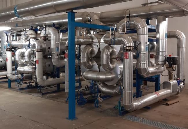 Innerhalb der Wärmeübertrager wird die Wärme des heißen Primärwassers auf das kühlere Wasser des Sekundärkreislaufs übertragen. Das dabei erwärmte Heizwasser strömt anschließend im Sekundärnetz zu den Hausanschlussstationen der angeschlossenen Gebäude.